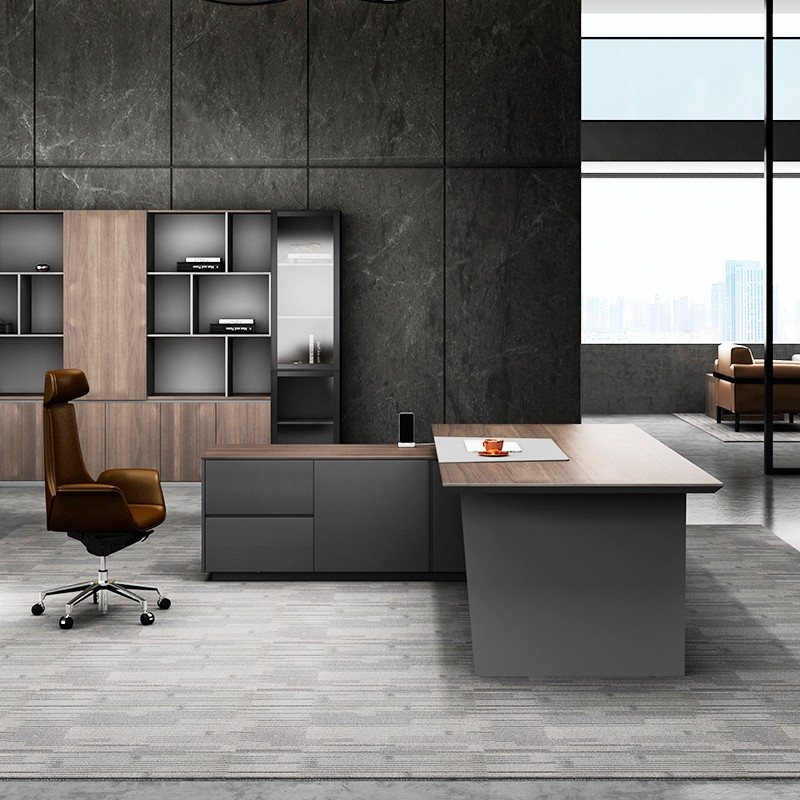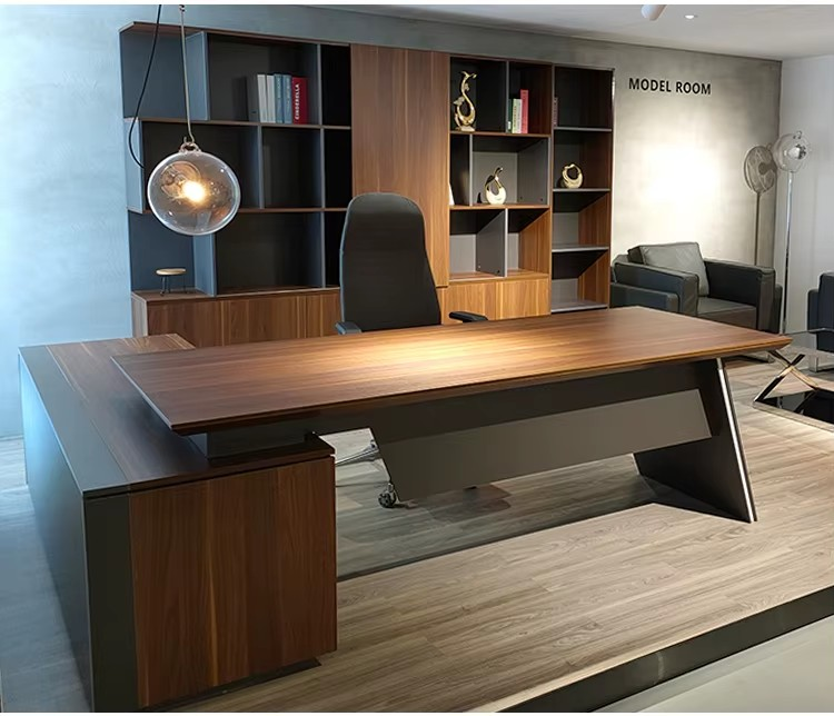 Modern Executive Style: Sleek design available in rich wood finishes (mahogany, walnut, oak) or modern tones (grey, black, white).