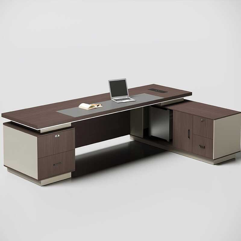 With its sleek lines and polished finish, the desk elevates the aesthetics of any office. Additionally, it conveys professionalism and authority, making it ideal for executive cabins.