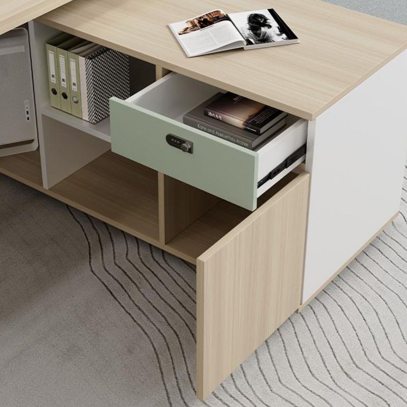 Crafted with durable engineered wood or MDF, it features a scratch-resistant finish in modern tones such as walnut, oak, or matte black. The L-shaped design supports a productive workflow by separating task zones while enhancing overall space efficiency.