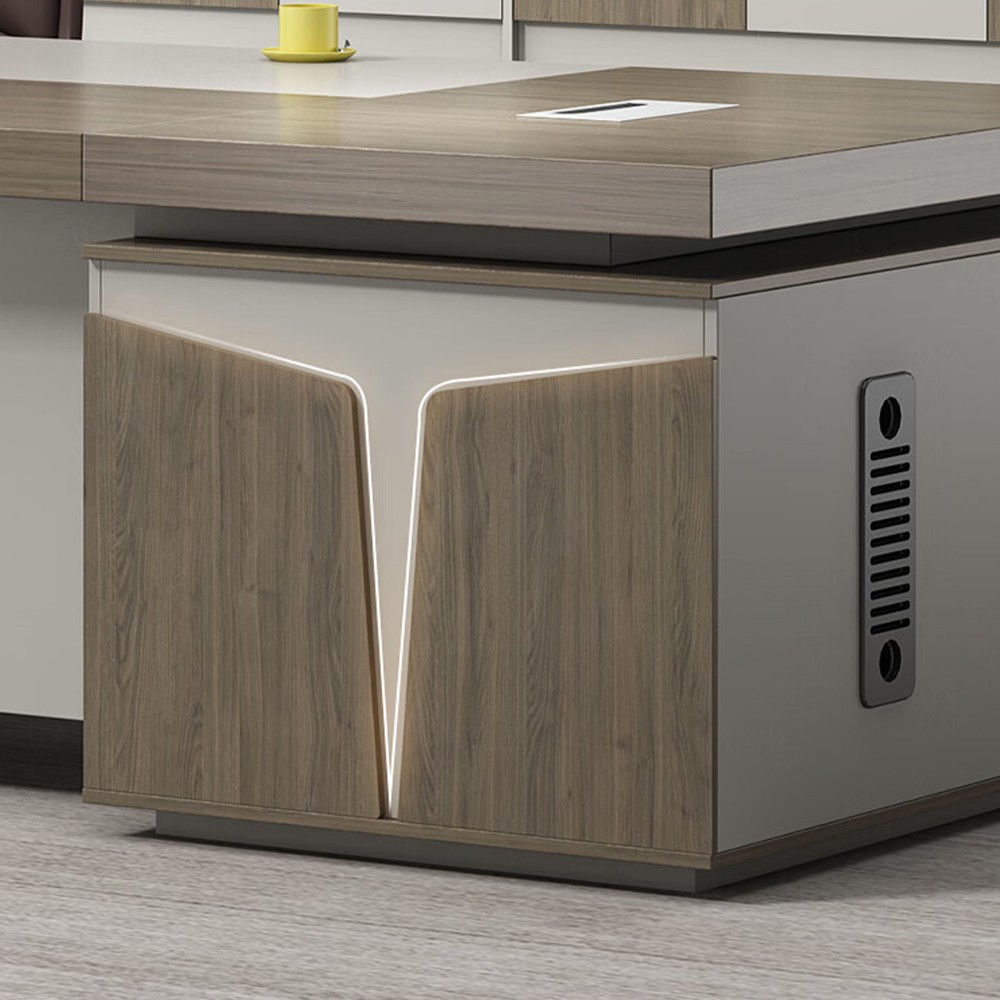 Modern Executive Design: Available in finishes like walnut, white, oak, or grey.