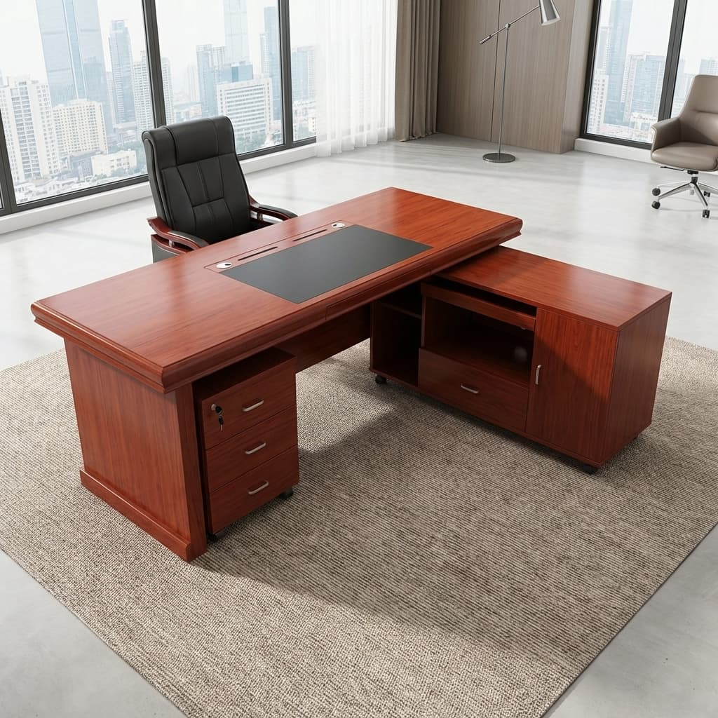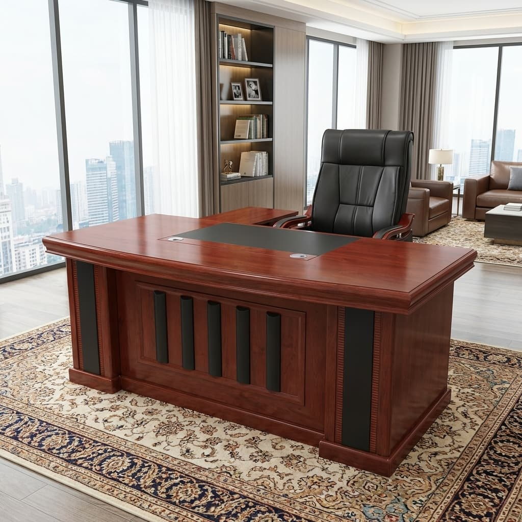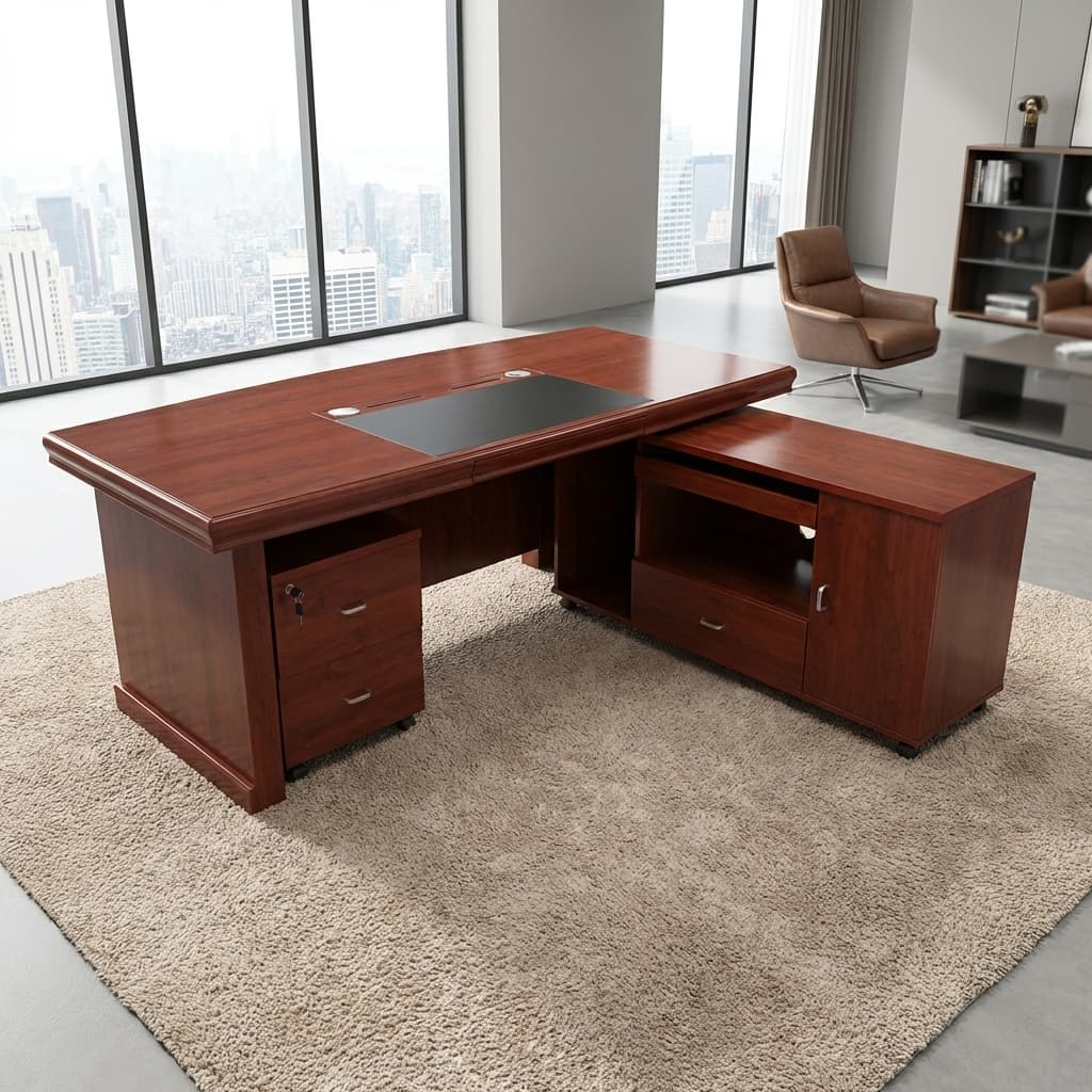 Built from premium engineered wood or MDF, this executive desk combines durability with design excellence. Whether you’re overseeing operations, managing projects, or hosting meetings, this desk offers the ideal combination of sophistication and functionality.
