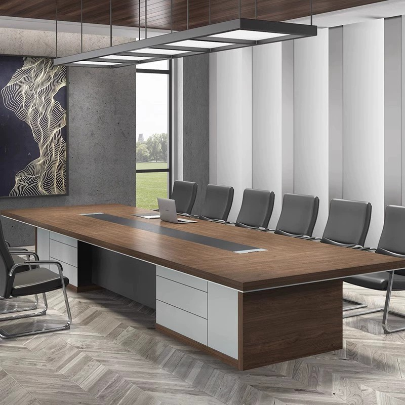 Not only does it provide ample seating for large teams, but it also enhances office aesthetics and collaboration. Furthermore, its durable construction ensures consistent performance over time. Therefore, it is the perfect table for high-level meetings, presentations, and group discussions.
