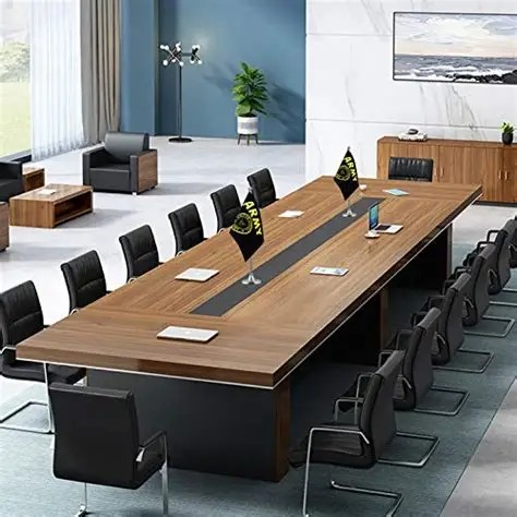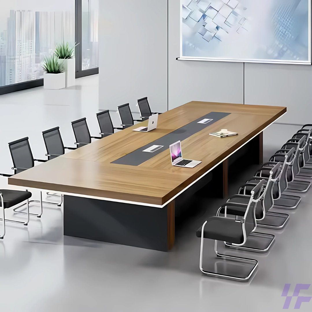 Crafted from high-quality materials, this boardroom table is built for strength, stability, and long-term use. The solid structure ensures reliable support during daily meetings, while the smooth surface is resistant to scratches and easy to maintain. It is designed to handle heavy office use while maintaining its premium appearance over time.