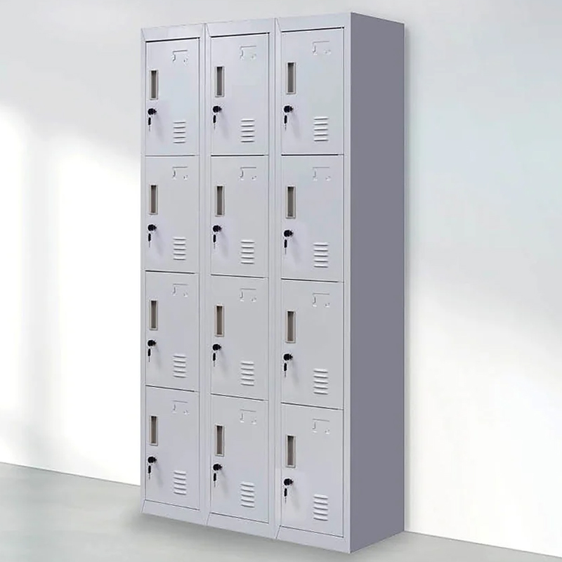 Features 12 separate compartments, each with its own lock, allowing multiple users to safely store personal items, documents, or valuables.