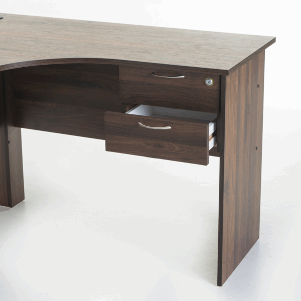 Crafted from high-quality materials with a premium finish, this desk enhances the look of any executive office or home workspace. Its L-shape maximizes space usage, fits seamlessly into corners, and promotes productivity with easy access to work essentials on both sides.