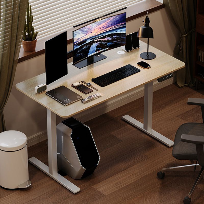 Built with a sturdy steel frame and a scratch-resistant laminate desktop, the desk is made to withstand daily use. The minimalist design, available in elegant finishes like white, oak, or walnut, fits seamlessly into both home and office environments.