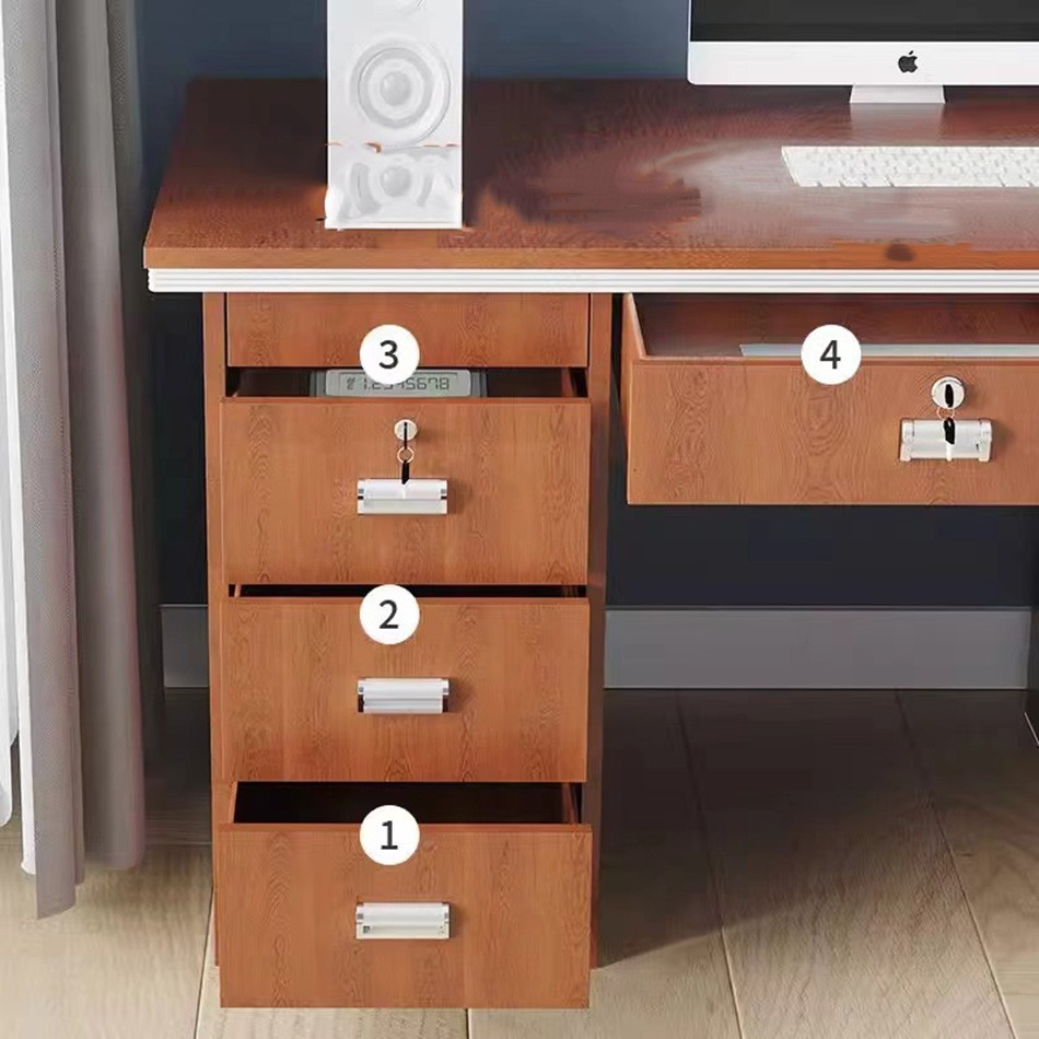 One of the standout features is the integrated drawer system. Typically, the desk includes multiple drawers and a lockable cabinet for secure storage of files and office essentials.