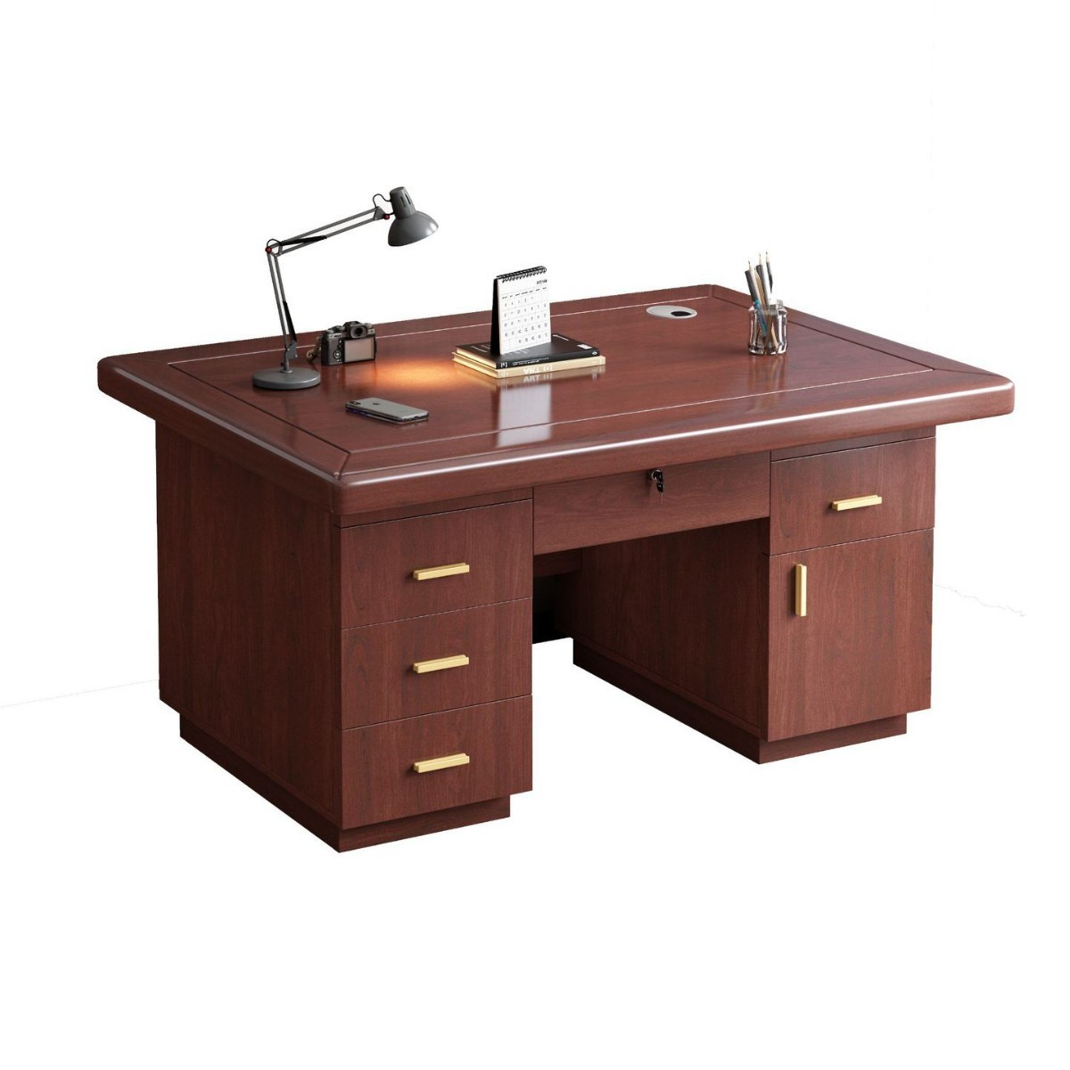 Built from premium materials with a durable finish, the desk offers functional features such as cable management, optional side returns, and integrated storage. Whether for a CEO, manager, or remote executive, this desk combines elegance with productivity.