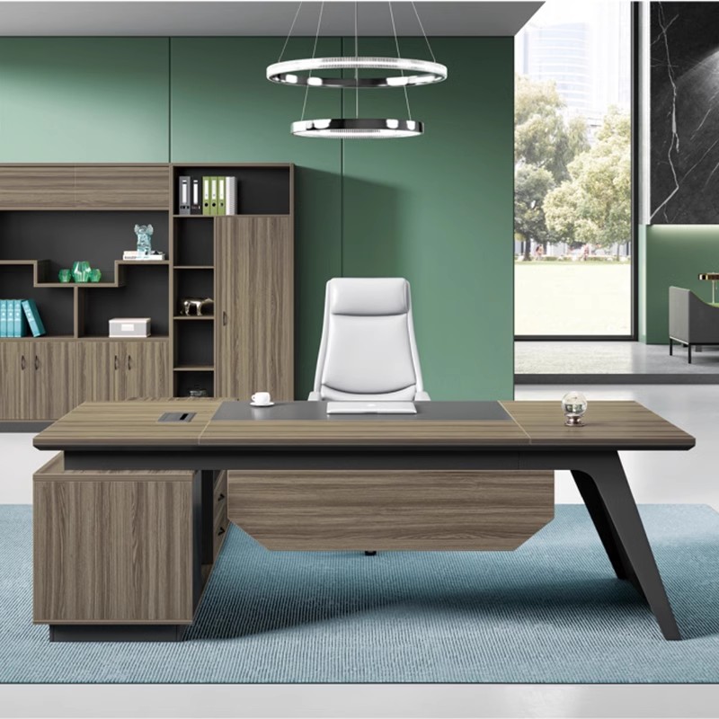 Modern Executive Design: Available in finishes like walnut, white, oak, or grey.