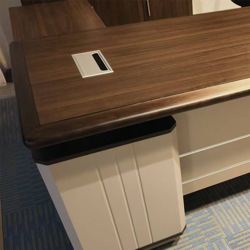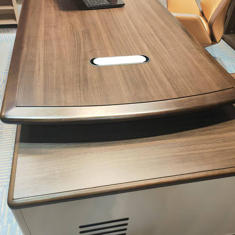This desk features a sleek and modern design with refined finishes such as walnut, mahogany, or laminated textures. Consequently, it enhances the visual appeal of your office while projecting professionalism and leadership.