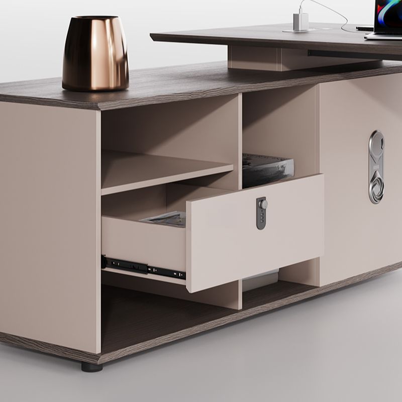 Designed for busy executive environments, the desk comes with built-in drawers, side cabinets, shelves, or pedestal units for neatly storing documents, files, office accessories, and confidential items. The L-shape provides easy access to all storage areas, helping maintain a clutter-free workspace that boosts focus and productivity.
