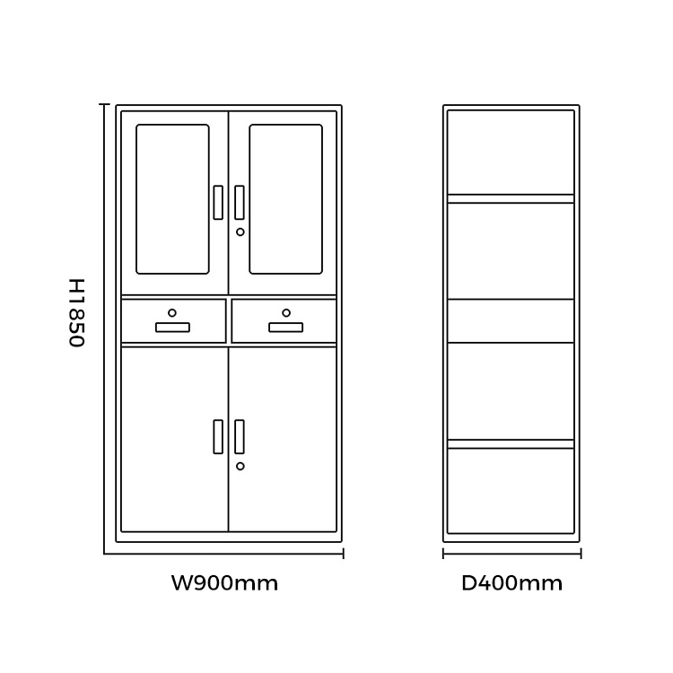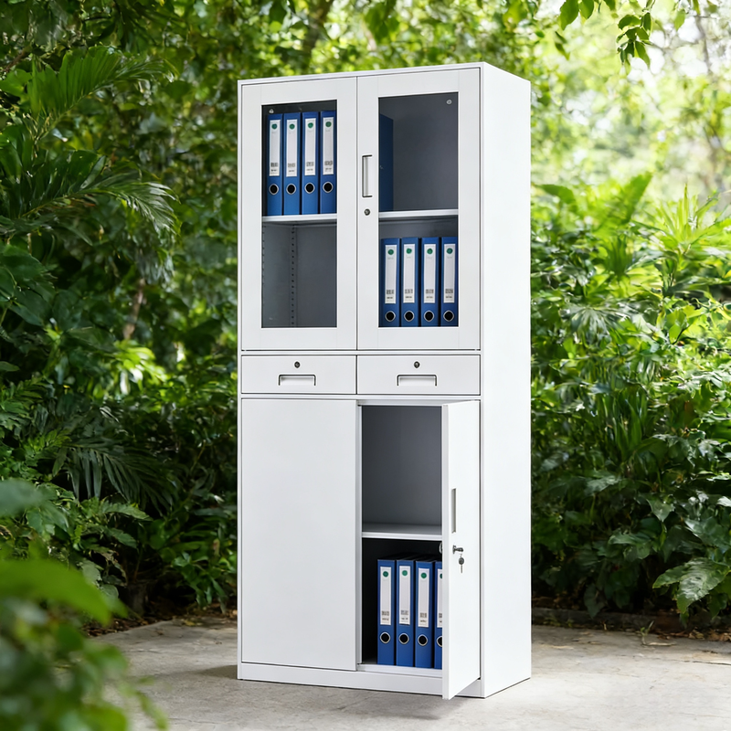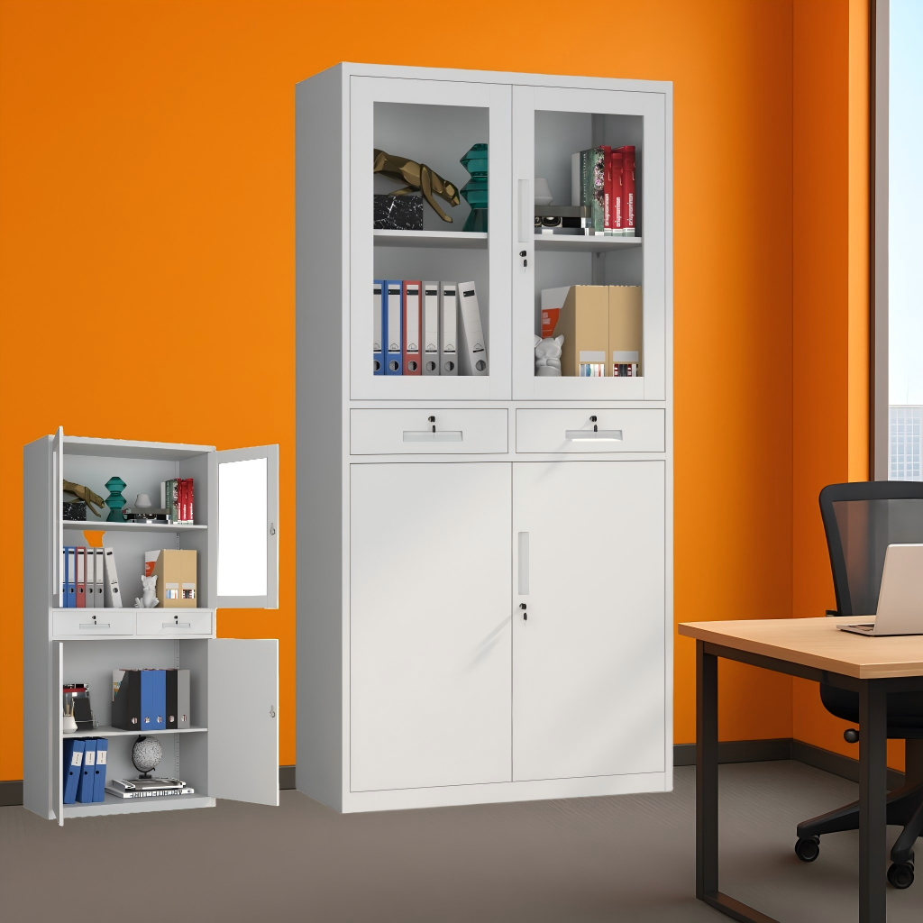 Designed with a dual-section concept, the upper glass doors allow easy visibility of frequently used items, while the lower solid section keeps sensitive documents safely hidden. It’s the perfect balance of accessibility and privacy for any workspace.