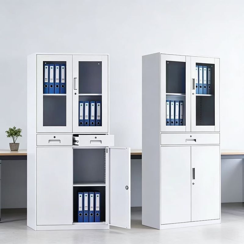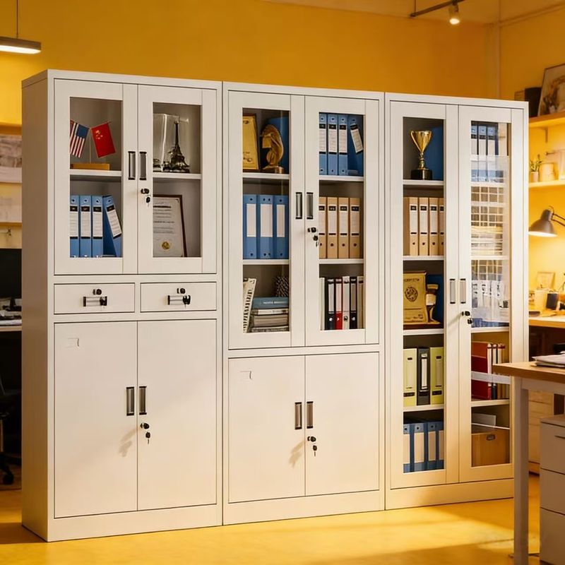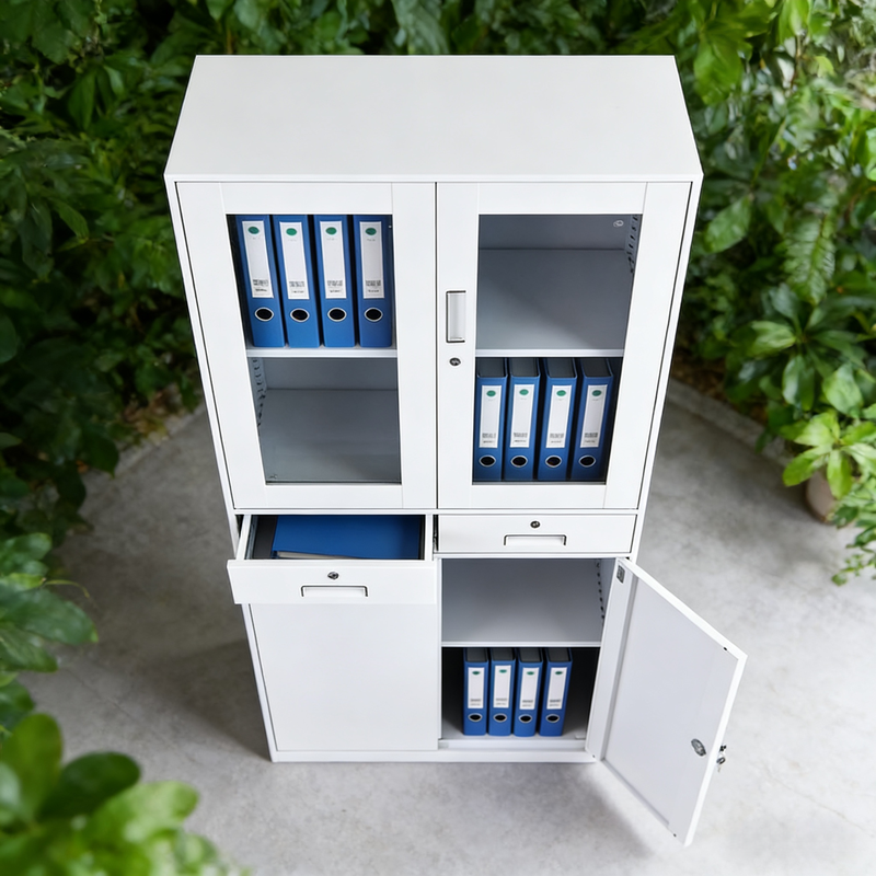 The upper glass panels provide clear visibility for easy identification of files, while the lower solid section keeps confidential documents protected and out of sight.