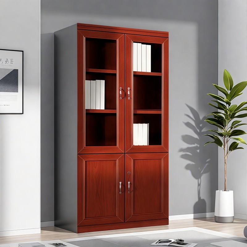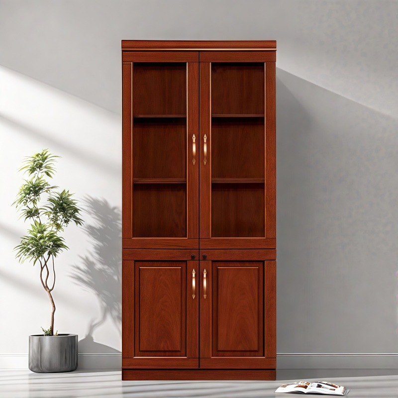 The upper glass panels allow you to view stored items easily. Consequently, file identification becomes quicker. The lower solid wood section keeps documents neatly hidden.