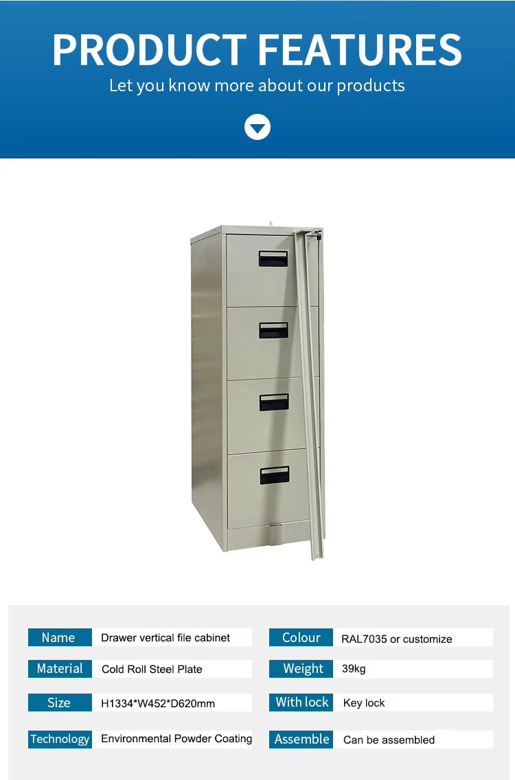 Optimize your workspace with the 4-Drawer Filing Cabinet with Bar, a practical and secure storage solution for documents, files, and office essentials. Designed for busy offices and professional environments, this cabinet features four spacious drawers with a central locking bar system to keep all contents safely secured. Its durable build and sleek design make it an ideal addition to corporate offices, home workstations, and reception areas.
