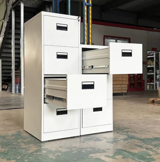 Generous drawer capacity accommodates files, stationery, tools, and employee belongings.