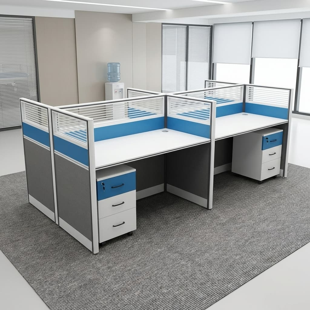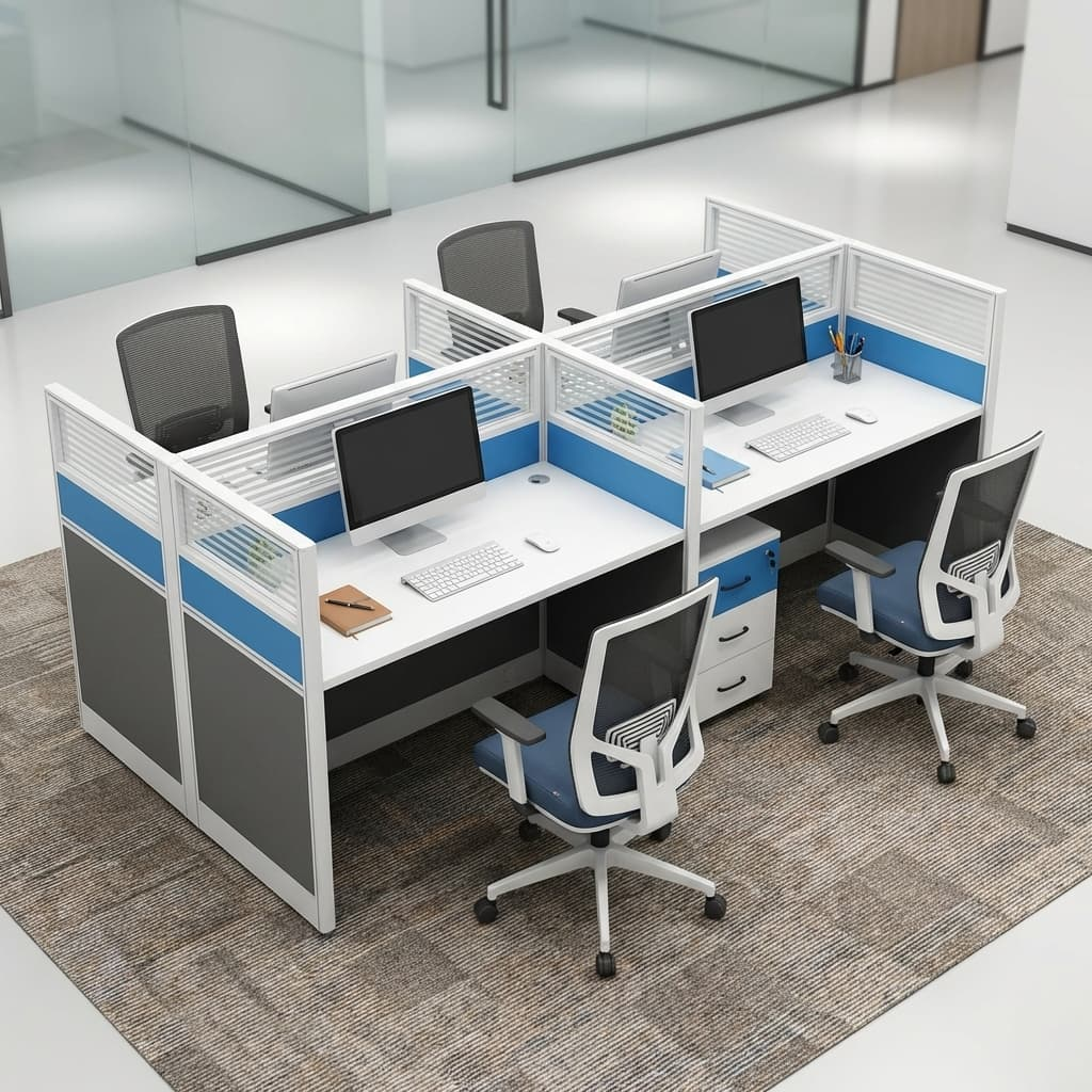 Designed to optimize office floor space, the 4-way configuration allows multiple employees to work comfortably within a compact footprint. This makes it ideal for offices looking to maximize productivity without overcrowding.