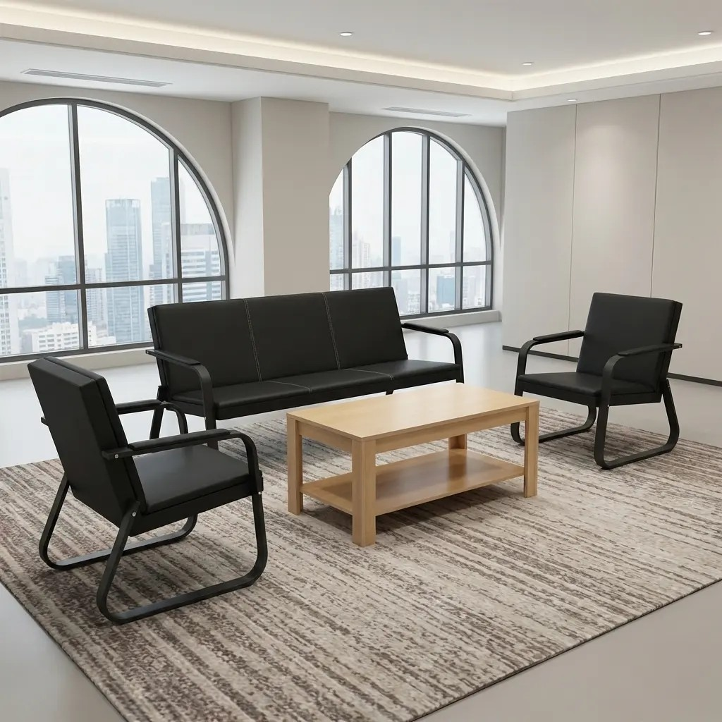 Upholstered in high-quality fabric or leatherette and supported by a solid wood or metal frame, the sofa offers long-lasting performance and ergonomic comfort. Its spacious design typically includes one three-seater and two single armchairs or a modular layout, making it easy to configure to your space. High-density foam cushioning and supportive backrests ensure visitors stay relaxed during their wait.