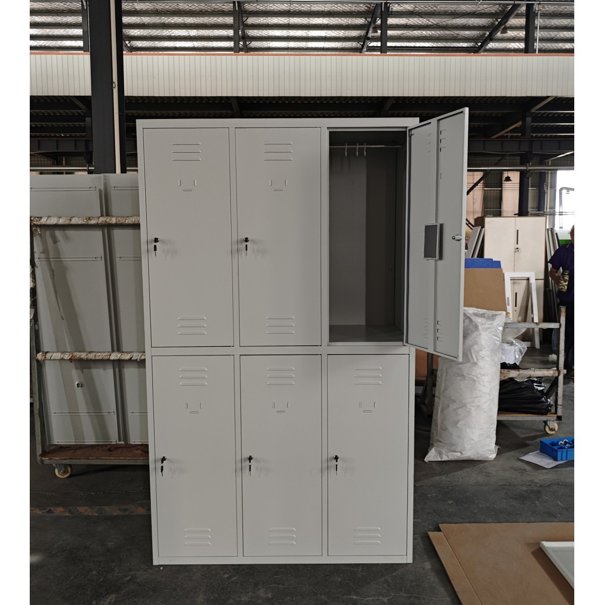 The 6-Locker Steel Gym Storage Cabinet is designed to provide secure, organized storage for multiple users in gyms, workplaces, schools, and sports facilities. With six individual compartments, it allows users to safely store gym bags, uniforms, personal belongings, and equipment in a shared environment.