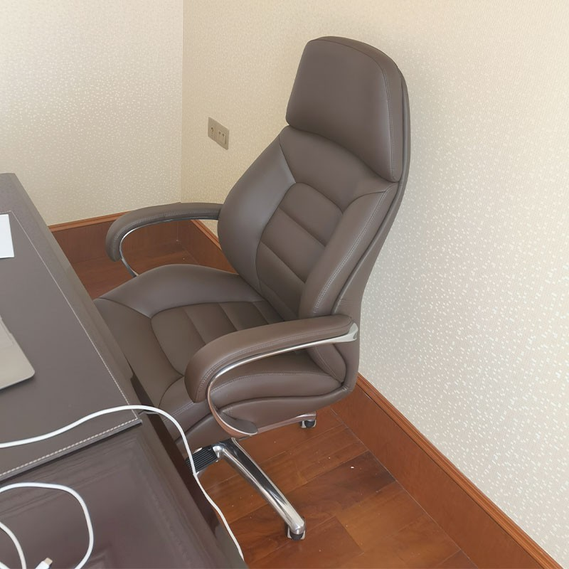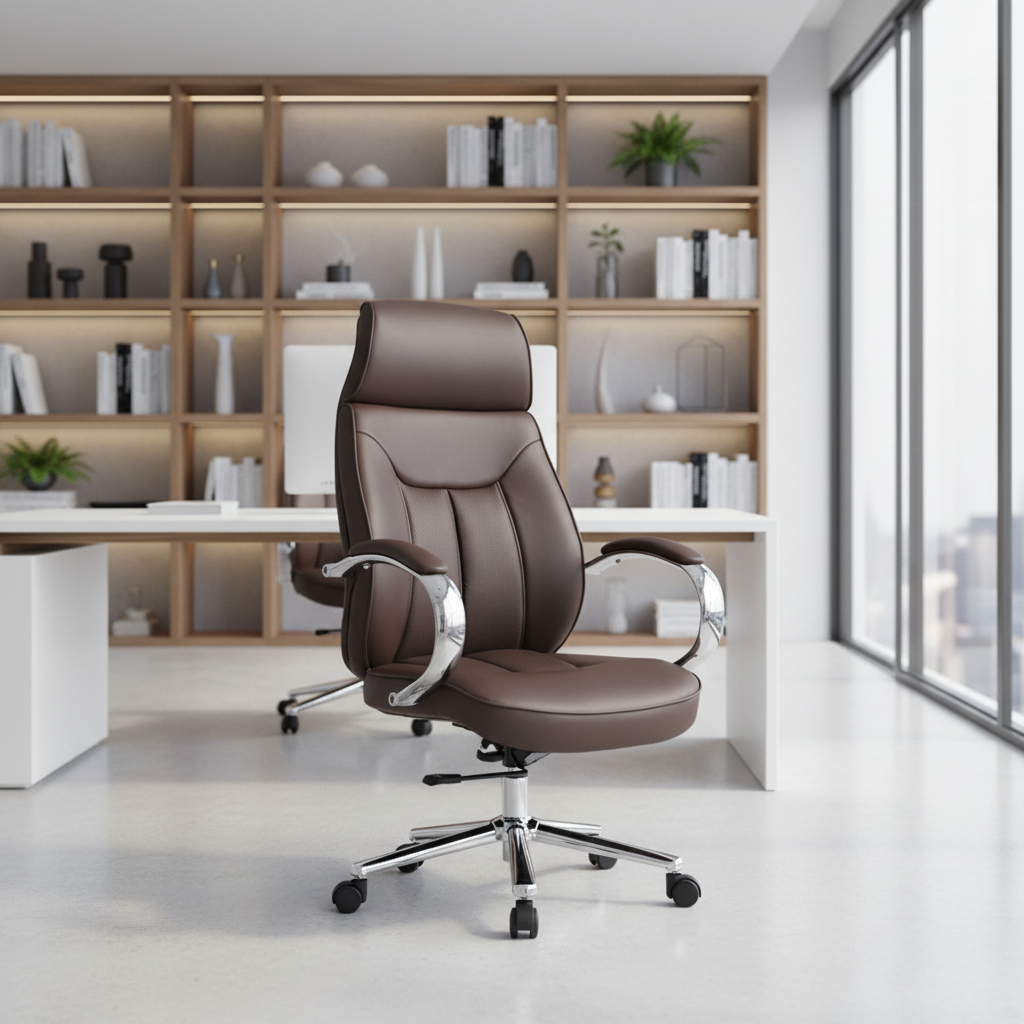 The rich brown upholstery adds a sophisticated and professional look, making it ideal for high-level office environments.