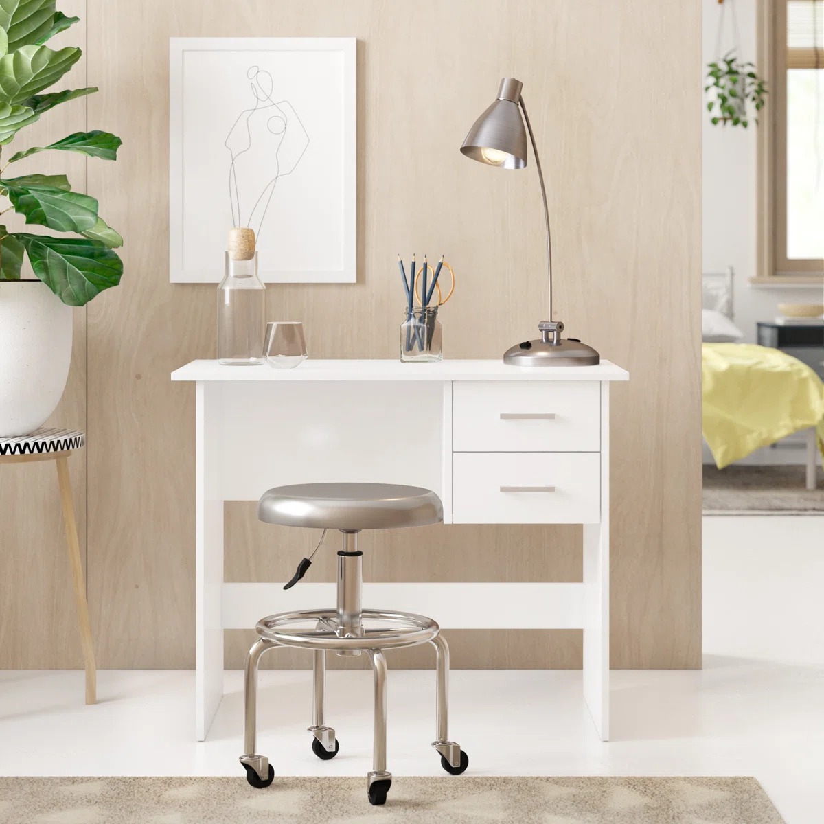 This study desk can be customized to your preferred dimensions, color, and finish, allowing it to seamlessly fit your room layout and décor. Perfect for bedrooms, home offices, and study corners.