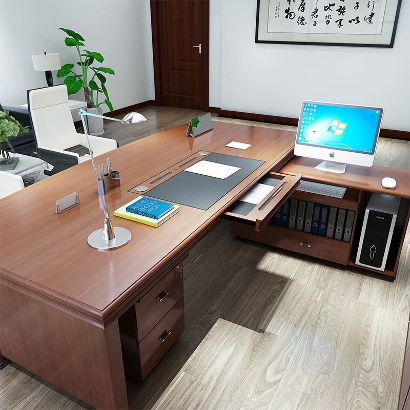This desk features a large dual-surface layout, allowing you to comfortably arrange computers, documents, and office accessories. The extended side return creates a second work zone for meetings, paperwork, or additional equipment, helping executives multitask efficiently.