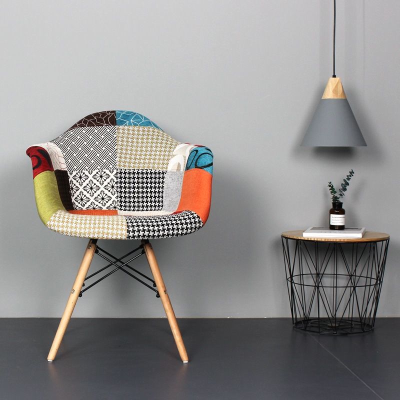 Bring a touch of mid-century charm and bold style to your space with the Eames Patchwork Chair. Inspired by the iconic Eames design, this chair features a unique patchwork fabric upholstery combined with a molded plastic shell for superior comfort and support. The striking mix of colors and patterns makes it a statement piece, while the solid wood legs with metal cross supports ensure stability and durability. Perfect for living rooms, dining areas, creative studios, or modern office setups, the Eames Patchwork Chair blends artistic flair with ergonomic design.