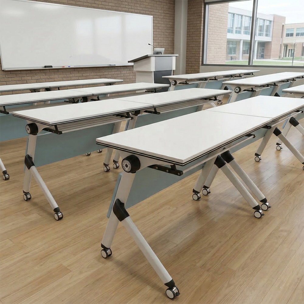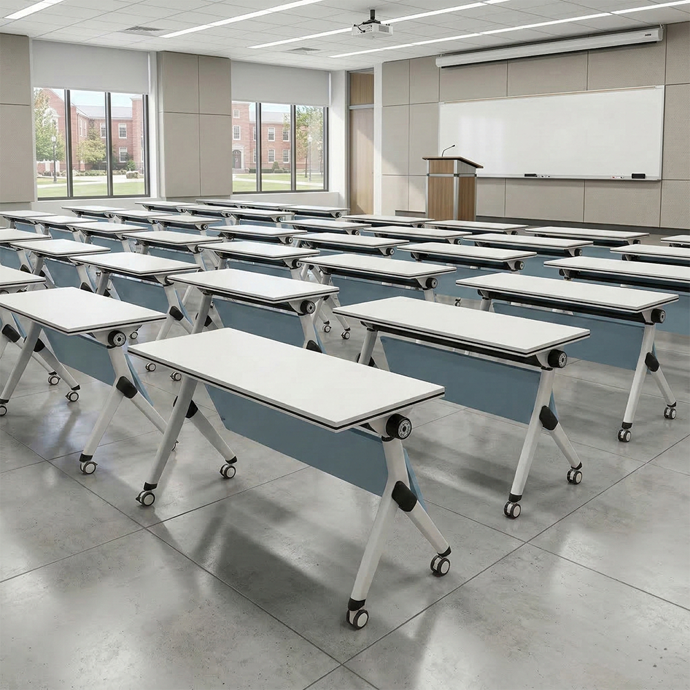 This table features a folding mechanism that allows the tabletop to be collapsed and stored easily. As a result, you can save valuable floor space in offices or training halls. Moreover, it is ideal for dynamic environments where layouts change frequently.