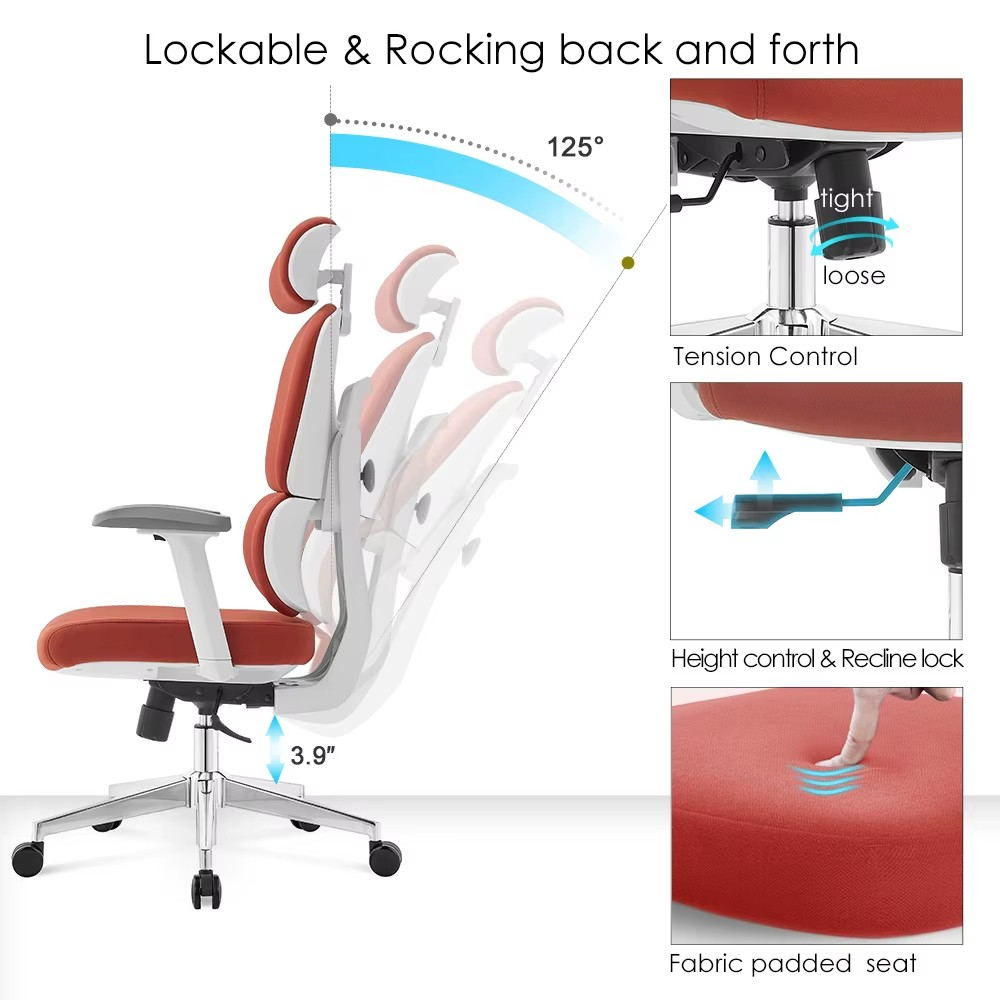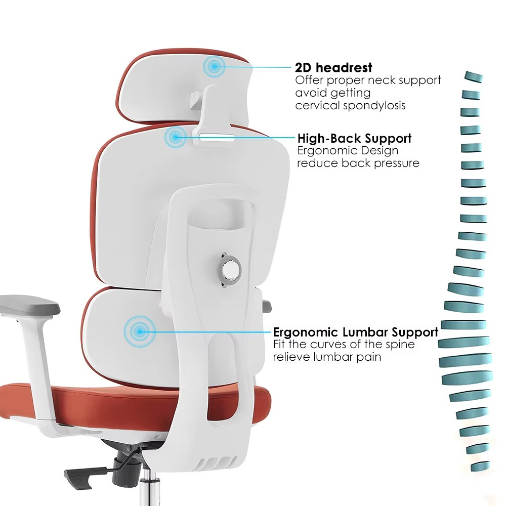 The high-back structure provides full support for your back, shoulders, and neck. With comfortable cushioning and a supportive frame, it helps minimize fatigue and keeps you comfortable throughout the workday.