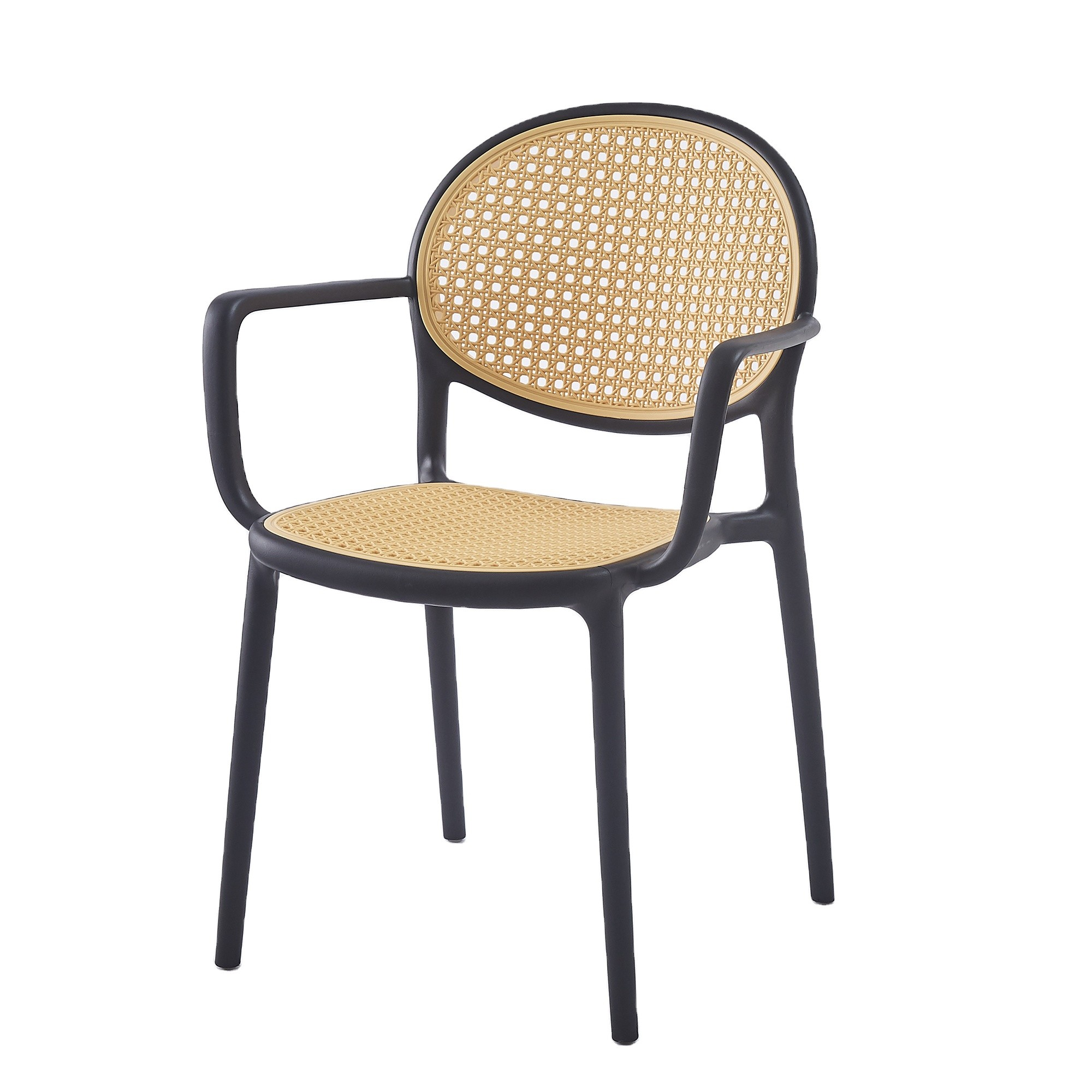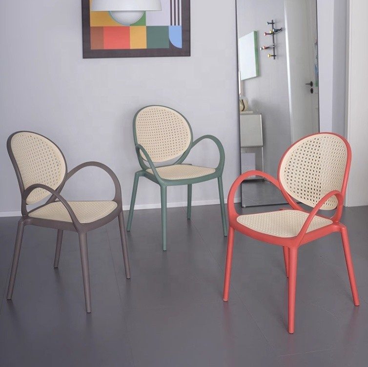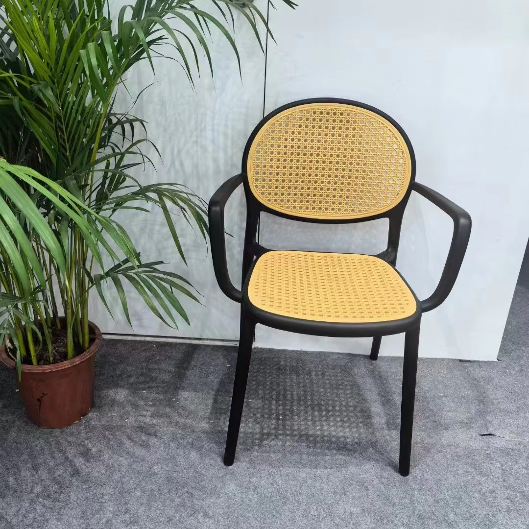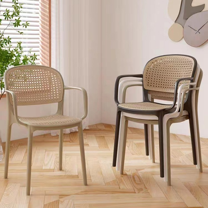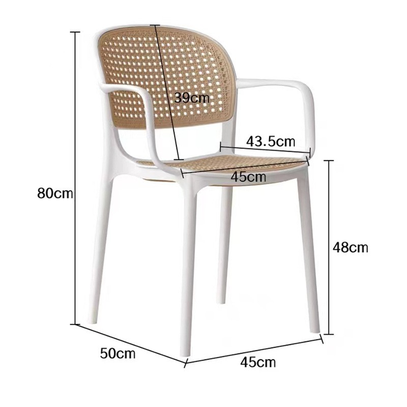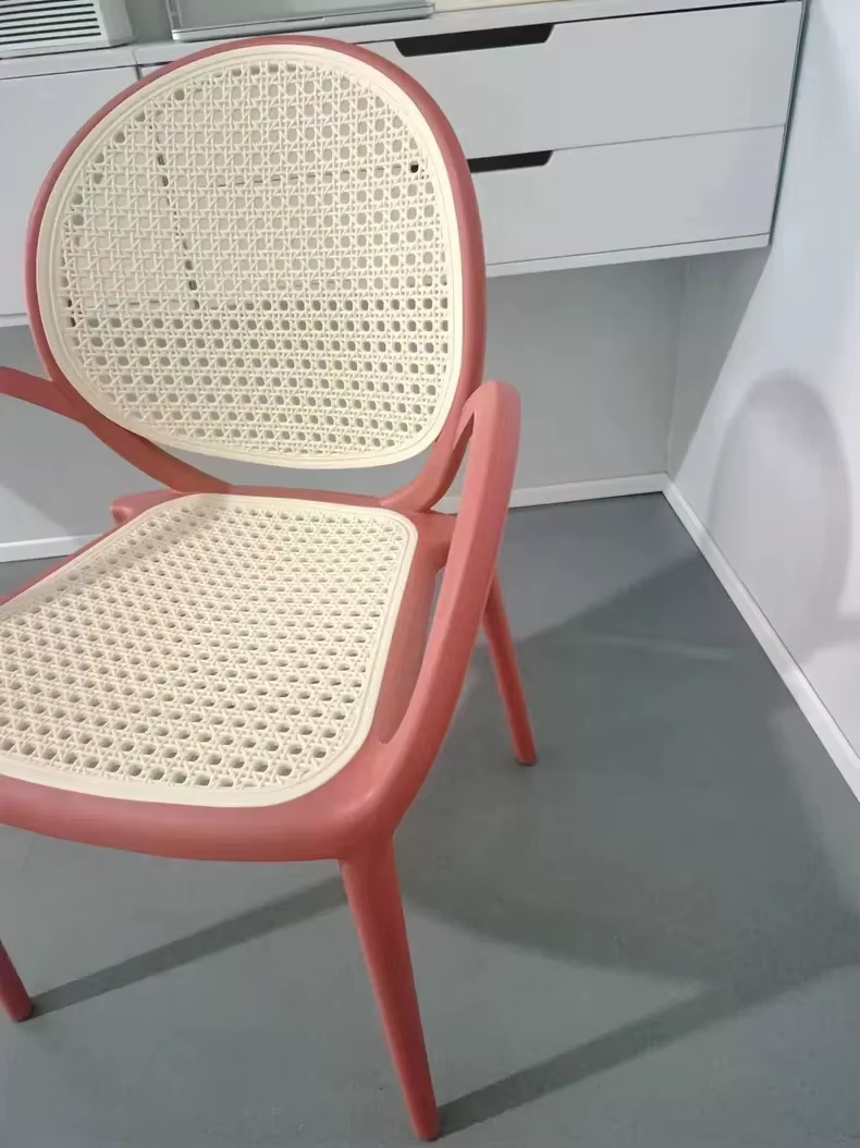 Designed with a supportive backrest and well-shaped seat, the modern rattan plastic chair provides comfortable seating for extended periods. Whether used for dining, relaxing, or social gatherings, it ensures a pleasant sitting experience 😊🪑.