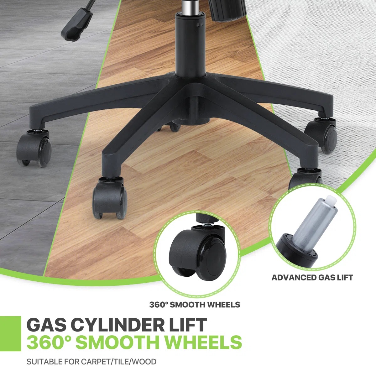 🔄 Smooth Swivel & Casters – Easy movement