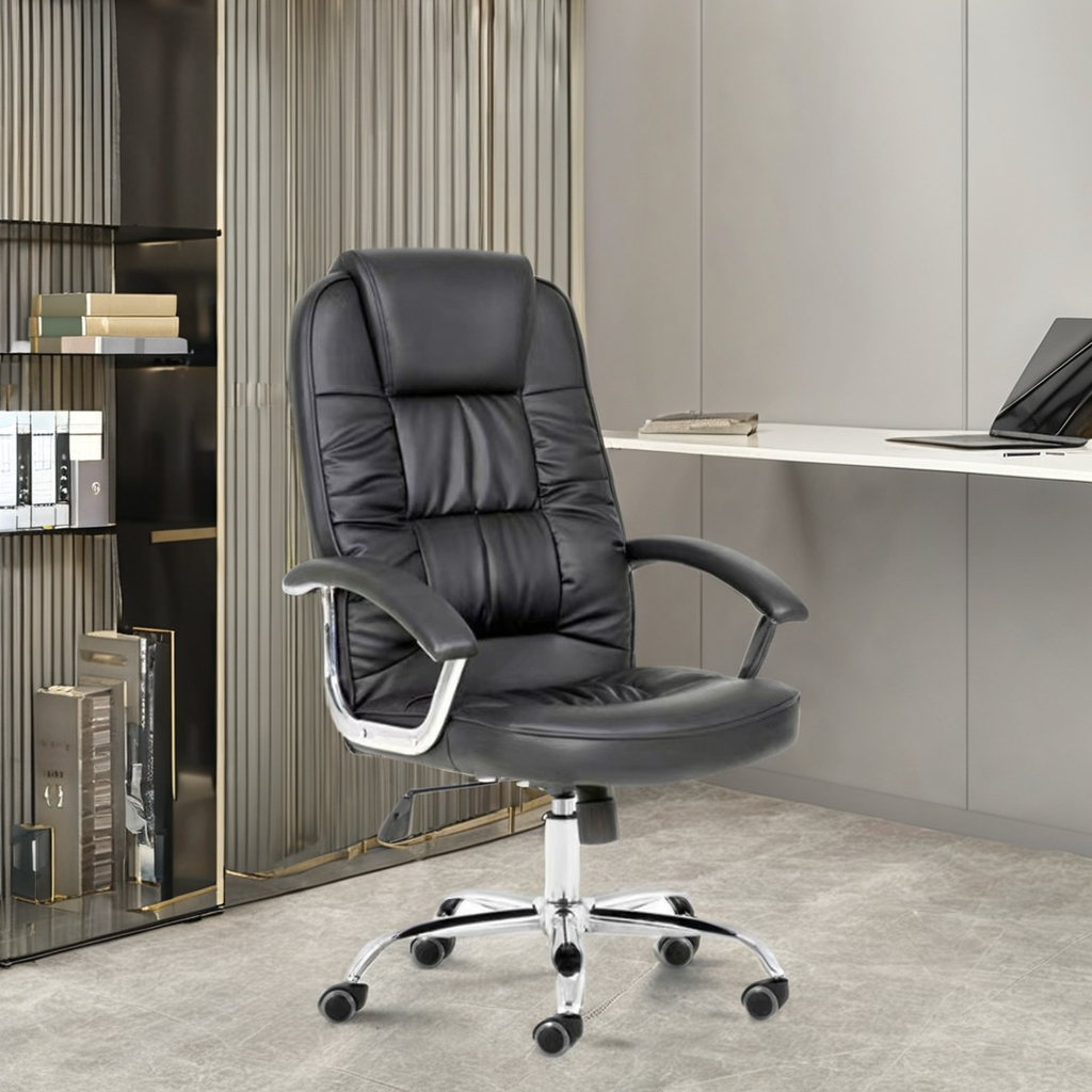 Upgrade your workspace with the Office Executive Leather Chair, designed for superior comfort, support, and a sleek executive look. Upholstered in high-quality leather, this chair offers a luxurious feel while providing ergonomic support for your spine, neck, and shoulders. With adjustable height, reclining, and 360° swivel features, it delivers a fully customizable seating experience. Ideal for executive offices, boardrooms, and home workspaces, this chair combines elegance, functionality, and durability.