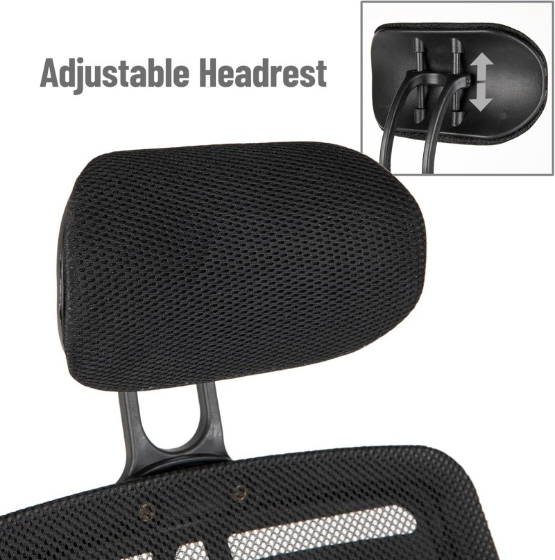 Customizable headrest for neck and upper back comfort during extended work periods.