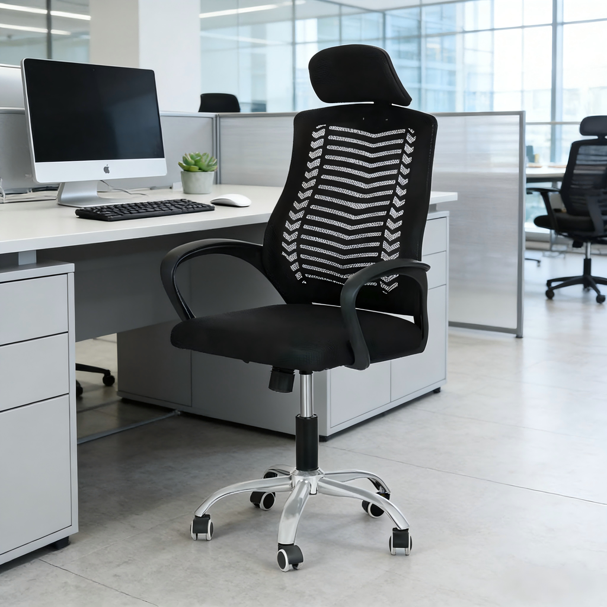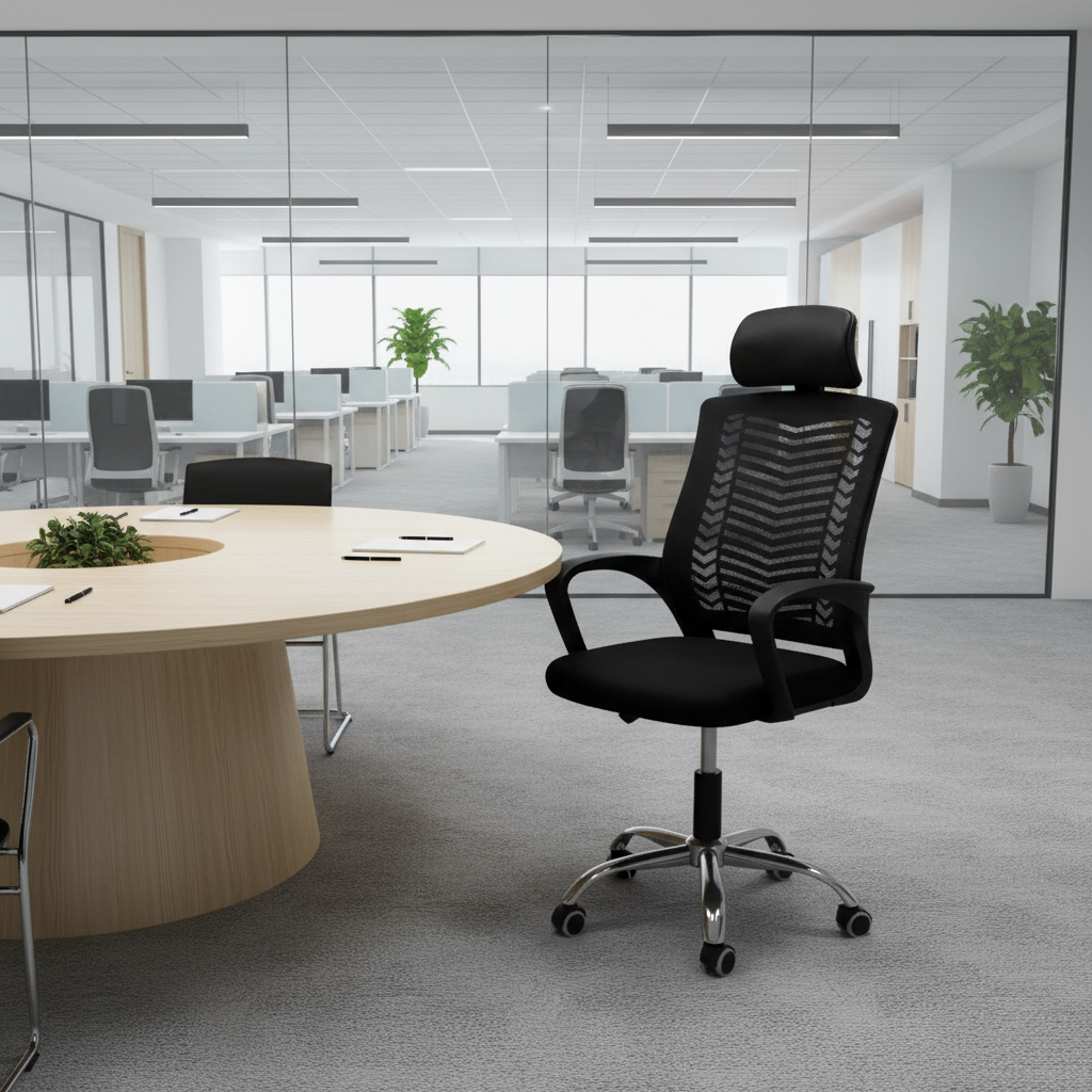 Upgrade your office seating with the Office Mesh Headrest Chair—designed to provide ergonomic support, superior comfort, and enhanced productivity. Ideal for corporate offices, home workstations, and co-working spaces, this chair combines a breathable mesh design with a supportive headrest to keep you comfortable during long hours.