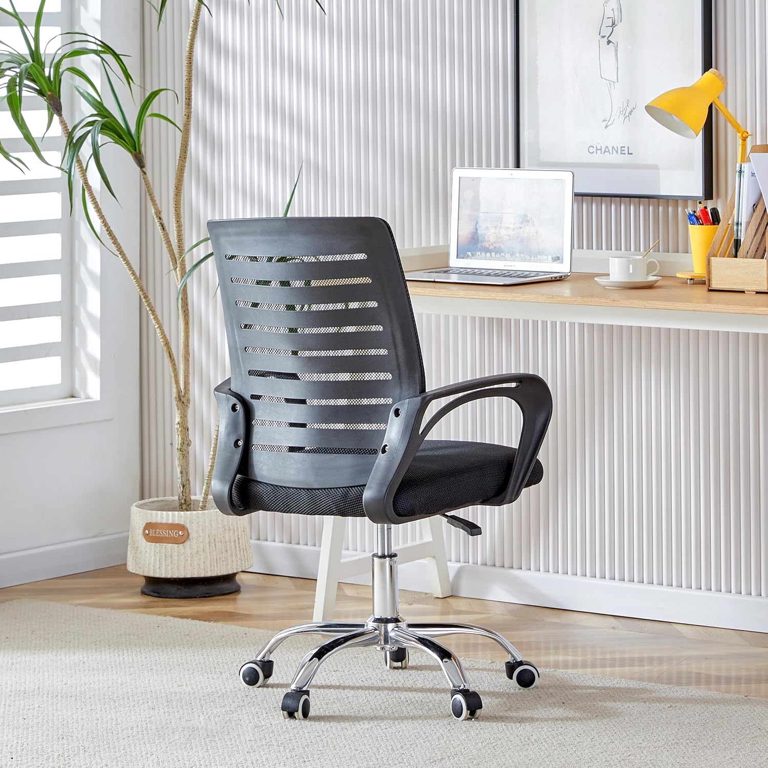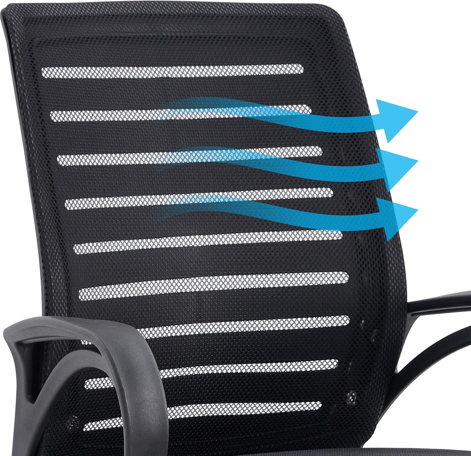 Stay fresh throughout the day with a ventilated mesh backrest that promotes airflow and reduces heat buildup during extended sitting.