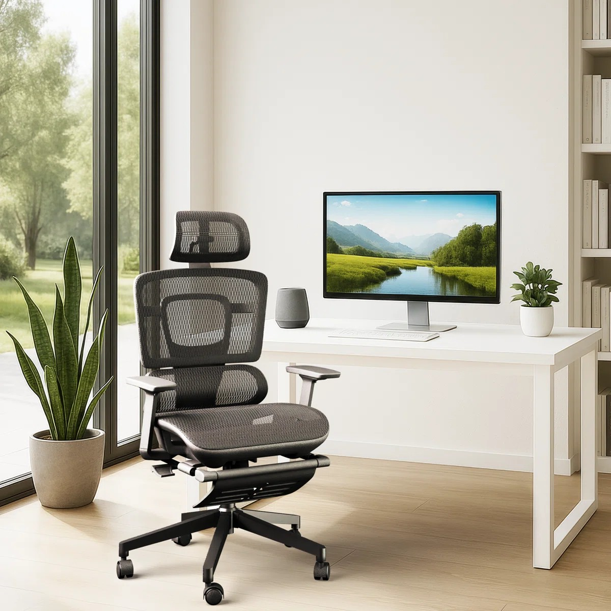This orthopedic high-back chair with footrest is perfect for office professionals, home workers, and gamers, offering long-hour comfort and support while maintaining a sleek, professional appearance.