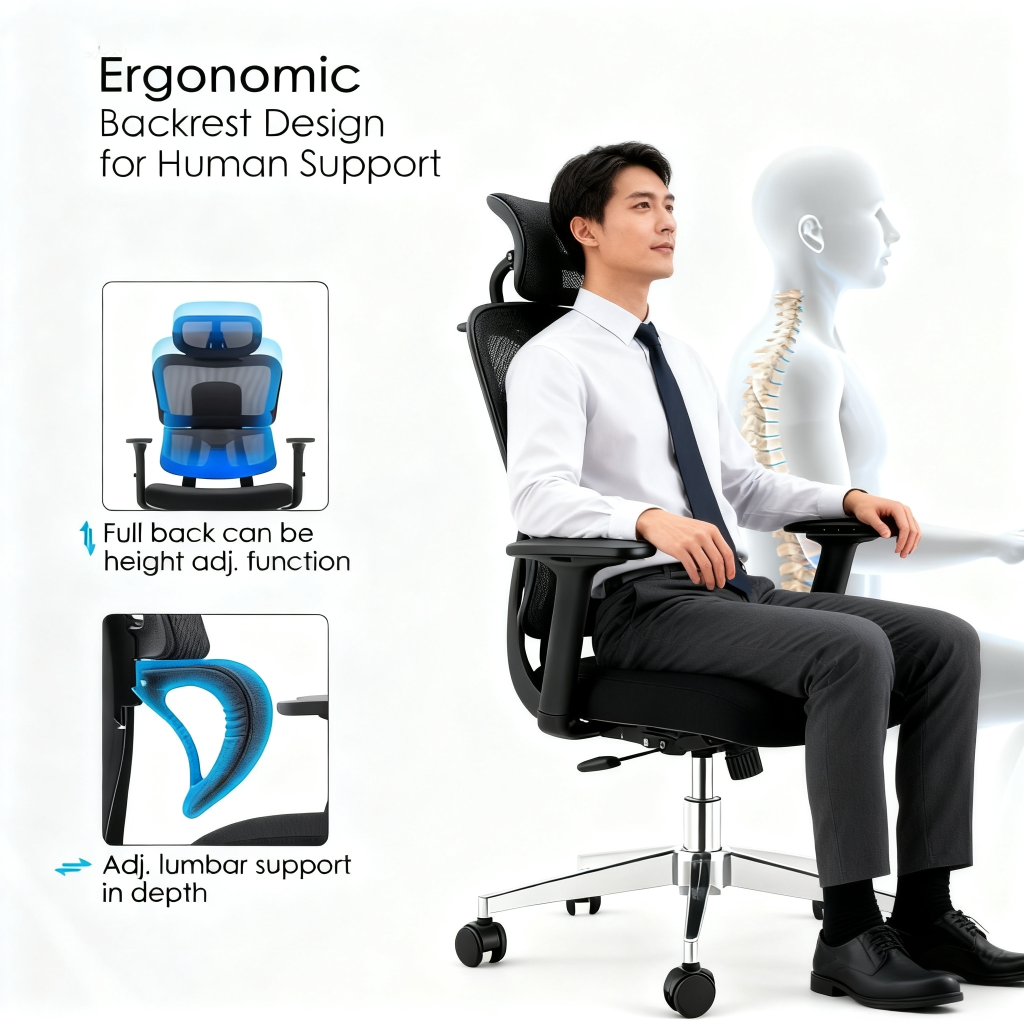 Stay cool and comfortable all day with a high-quality mesh fabric backrest that improves airflow and prevents heat buildup. Ideal for long working hours, especially in warm environments, ensuring continuous freshness and comfort.