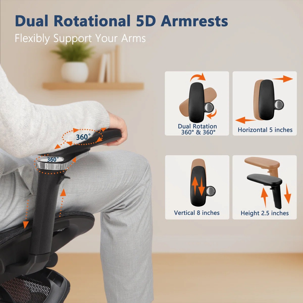 📏 Height & Armrest Adjustability