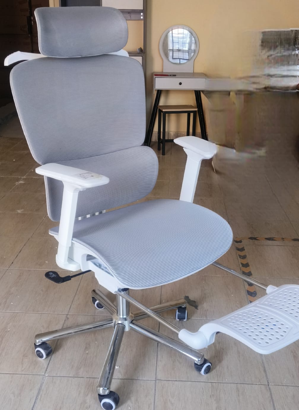 Upgrade your workspace with the White Ergonomic Executive Chair, a perfect blend of modern elegance, ergonomic support, and executive-level comfort. Designed to enhance posture and productivity, this chair features a high-back structure with built-in lumbar support to reduce back strain during long working hours. Upholstered in premium white leather or breathable material, it adds a clean, sophisticated look to any office or home workspace. The adjustable height, tilt mechanism, and 360° swivel function allow personalized comfort and effortless mobility. Built with a sturdy base and smooth-rolling caster wheels, this executive chair delivers durability, style, and superior comfort for professional environments.