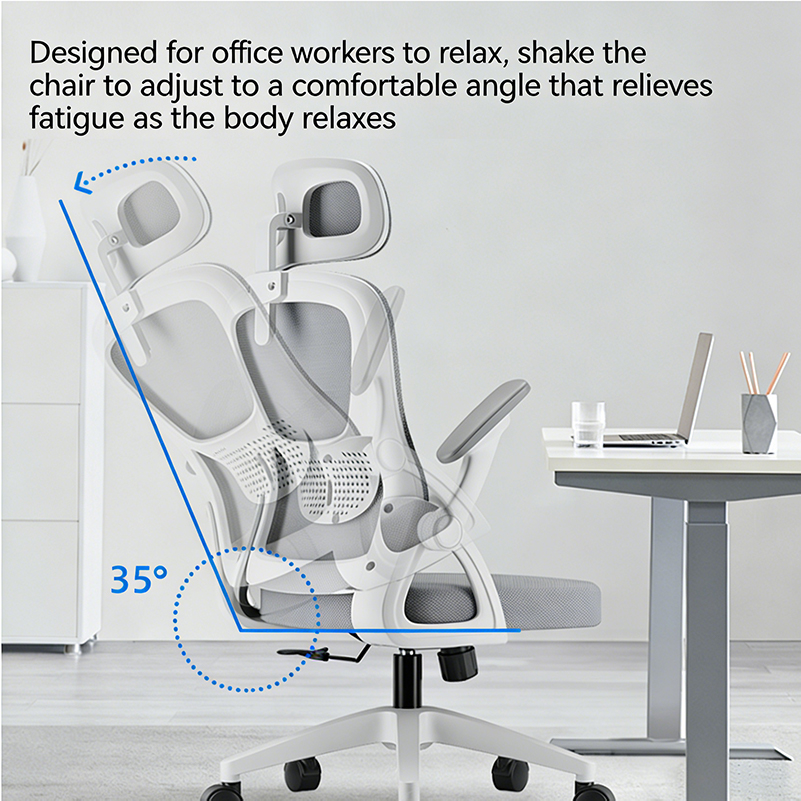 This chair features a high-back design that supports your entire spine—from the lower back up to the shoulders and neck. This helps improve posture and reduces fatigue during long hours of sitting.